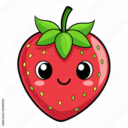 Obraz premium Cute Strawberry Drawing, Strawberry Colorful Flat Illustration