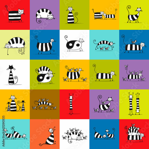 Fototapeta premium Cute striped cats family, seamless pattern for your design