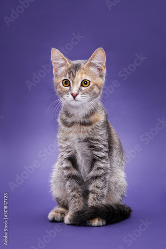Obraz premium Cute stripped kitten. Purple background