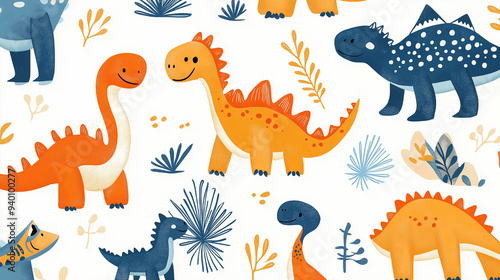 Obraz premium Cute Stylized Dinosaurs in a Fun Kid-Friendly Pattern