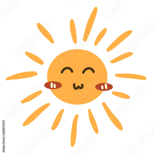 © NurNazirah, Fototapeta premium Cute sun doodle. Smiling sun illustration.handrawn sun.