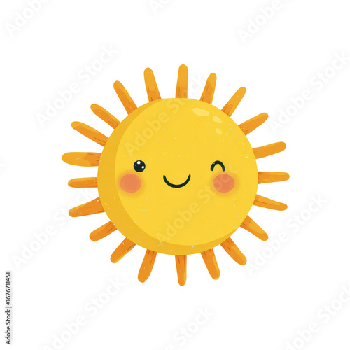 Fototapeta premium Cute sun with smiley face, perfect for stickers, kids projects, or summer-themed design elements