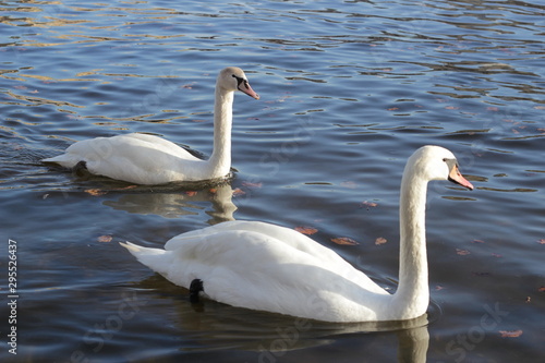Fototapeta premium cute swans are floating on the river