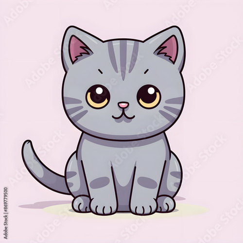 © Ana Lange, Obraz premium Cute sweet Grey British Shorthair Cat cartoon