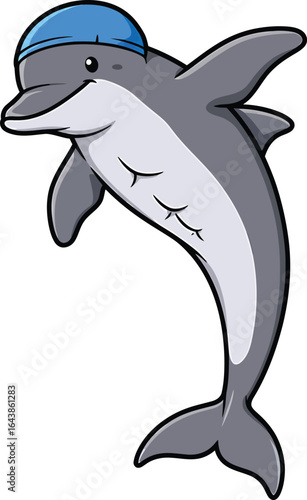 Fototapeta premium Cute Swimming Dolphin Clipart Vector Illustration of Cartoon Dolphin Wearing Blue Swim Cap