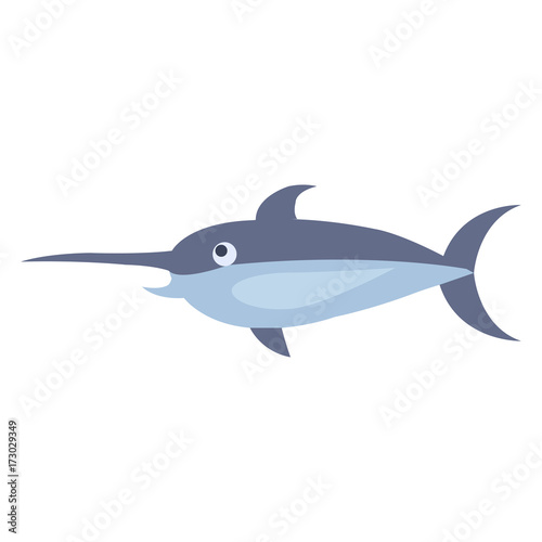 Obraz premium Cute Swordfish Cartoon Flat Vector Sticker or Icon