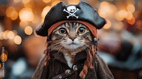 © anna, Naklejka premium cute tabby cat dressed as a pirate