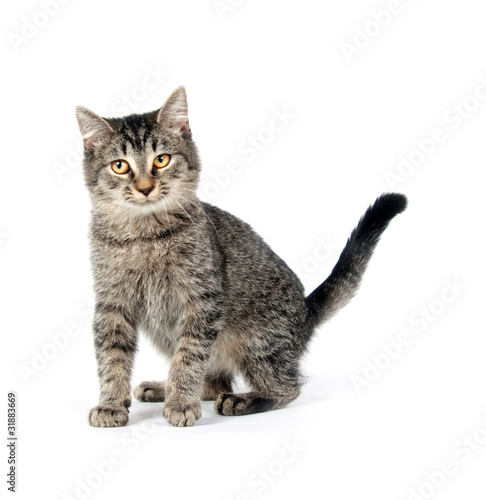 © Tony Campbell, Obraz premium Cute tabby cat on white background