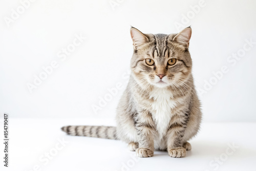 Obraz premium Cute tabby cat sitting on a white background