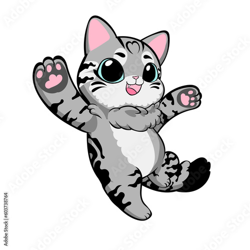 © Piya, Obraz premium Cute Tabby Gray Short Hair Cat Cartoon Illustrator