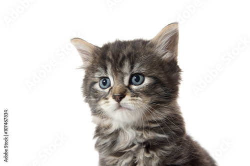 Fototapeta premium Cute tabby kitten face on white