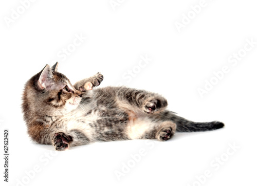 © Tony Campbell, Obraz premium Cute tabby kitten laying down and playing