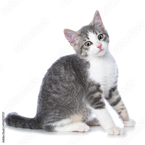 © DoraZett, Obraz premium Cute tabby kitten on white background