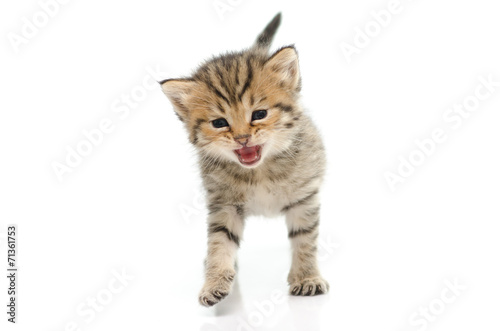 © lalalululala, Obraz premium Cute tabby kitten on white background