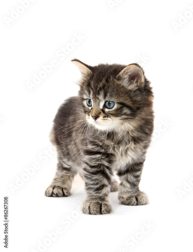 Obraz premium Cute tabby kitten on white background