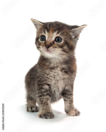 Obraz premium Cute tabby kitten standing on white