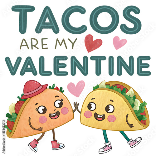 Fototapeta premium Cute taco couple celebrating Valentine's Day with love hearts
