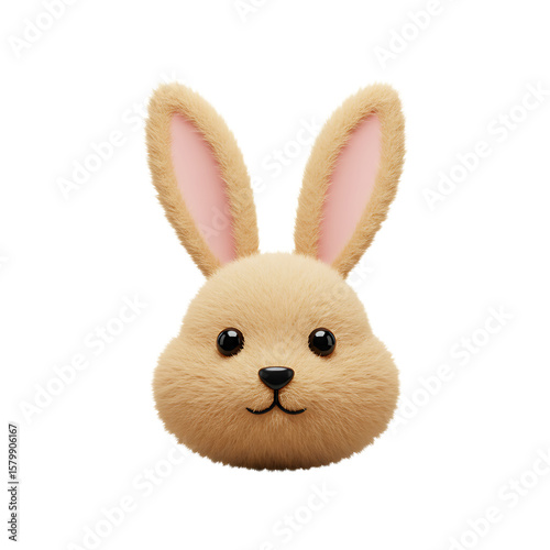 © Sri, Obraz premium Cute Tan Rabbit Face Fluffy Easter Decoration on White Background