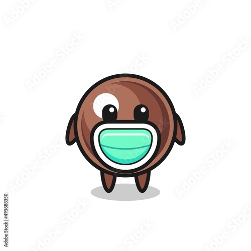 Obraz premium cute tapioca pearl cartoon wearing a mask