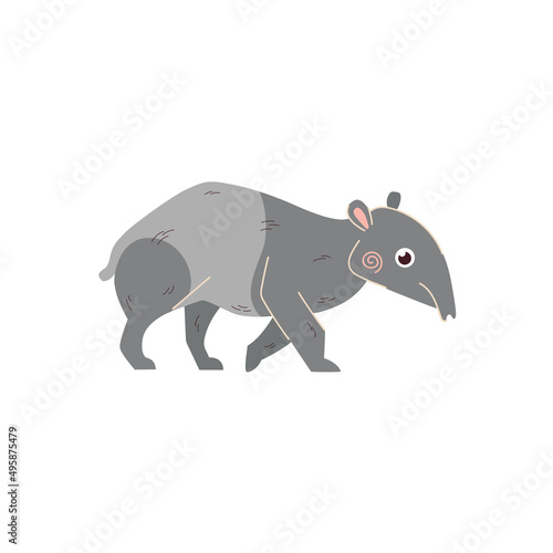 © Anastasia, Fototapeta premium Cute tapir vector illustration. Asian animal with elongated nose isolated on white background