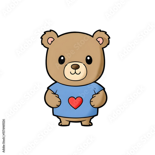 © Ivan, Fototapeta premium Cute teddy bear cartoon character wearing a blue shirt with a red heart on the chest on transparent background.