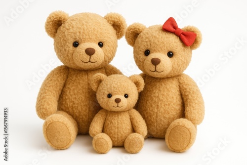 Fototapeta premium Cute teddy bear family set against a plain white backdrop