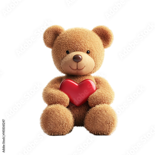 © Tohamina, Obraz premium Cute teddy bear holding a red heart Valentine's Day love affection