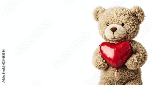 Obraz premium Cute Teddy Bear Holding Heart Shaped Balloon for Valentine's Day