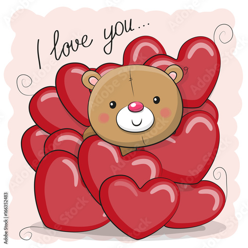 Fototapeta premium Cute Teddy Bear in hearts