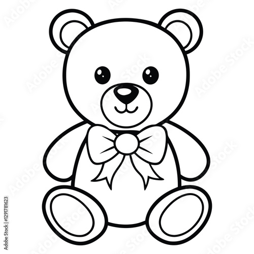 © PuspanjaliRani, Obraz premium cute teddy bear line art vector with a bow