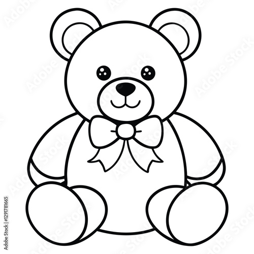 © PuspanjaliRani, Obraz premium cute teddy bear line art vector with a bow