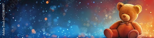 © Khaligo, Obraz premium Cute teddy bear on the colorful background with copy space