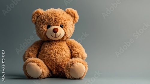 Obraz premium Cute Teddy Bear Sitting on Grey Background