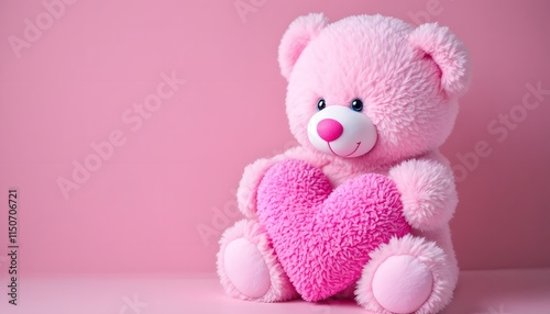 © Shams, Obraz premium Cute Teddy Bear with a Heart Pillow for Valentine’s Day