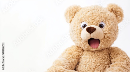 © Wild Dream, Fototapeta premium Cute teddy bear with a surprised expression and space for text on the left side