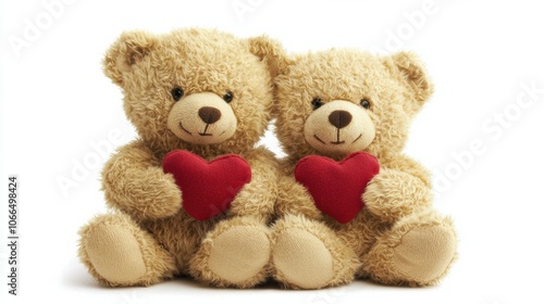 © ADD PHOTO, Fototapeta premium Cute teddy bears holding red hearts together