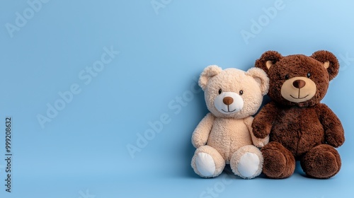 Obraz premium Cute Teddy Bears Sitting Together on Blue Background