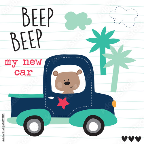 © Larienn, Fototapeta premium cute teddy in the car vector illustration