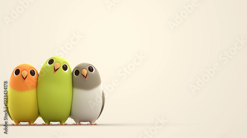 © Original St, Fototapeta premium Cute Three Birds on Light Background with Copy Space