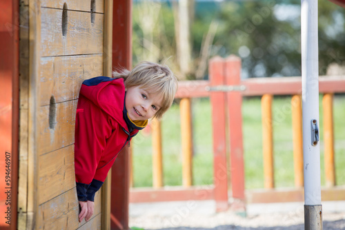 © Tomsickova, Obraz premium Cute toddler child, blond boy, playing on the playground
