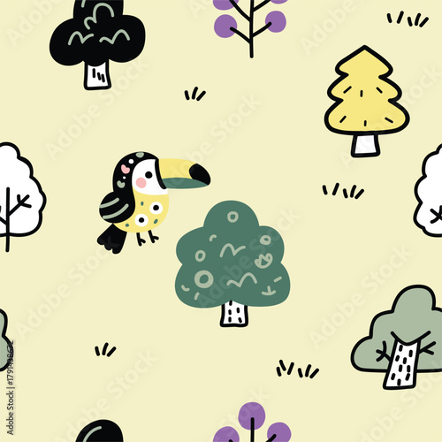 © atap, Obraz premium cute toucan cartoon doodle seamless vector