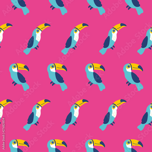 Naklejka premium Cute toucan seamless pattern, tropical birds, vector illustration