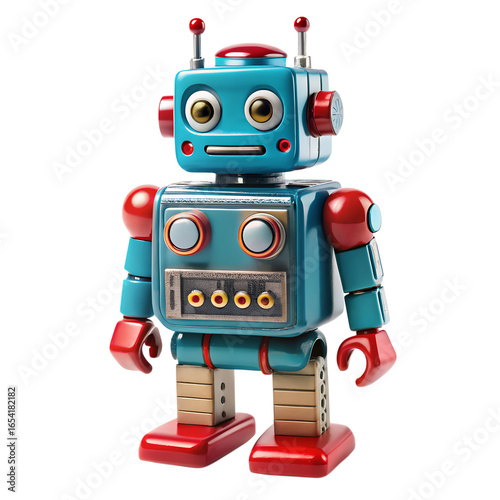 Fototapeta premium Cute toy robot isolated on transparent background