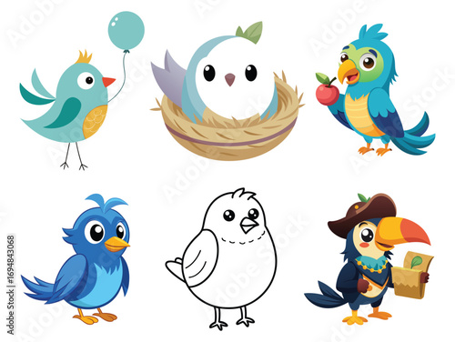 Fototapeta premium Cute Tropical Parrot Cartoon Vector Collection
