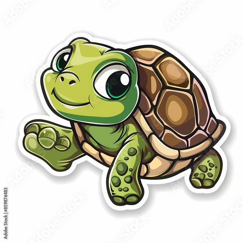 Fototapeta premium Cute turtle on a White Canvas Sticker.