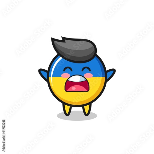 Fototapeta premium cute ukraine flag badge mascot with a yawn expression