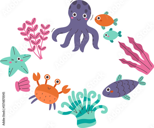 © Mykola Syvak, Naklejka premium Cute Underwater Sea Creatures Frame