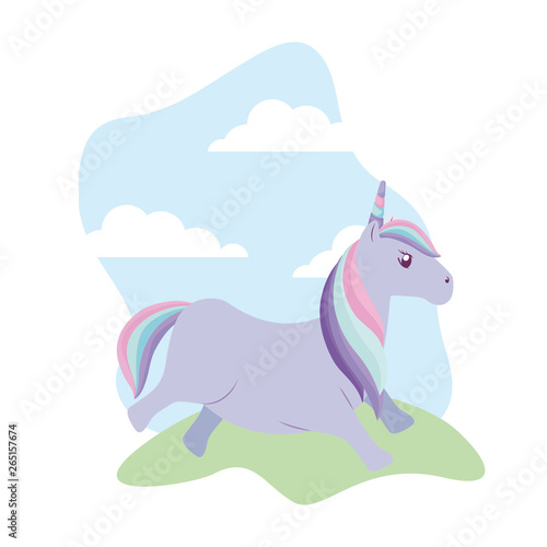 Naklejka premium cute unicorn animal in landscape