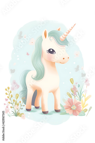 Fototapeta premium Cute unicorn illustration in a magical world.