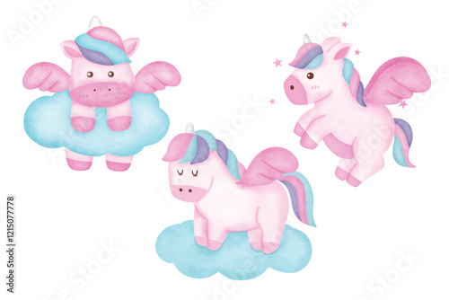 © Nattapohn, Naklejka premium Cute unicorn in watercolour style